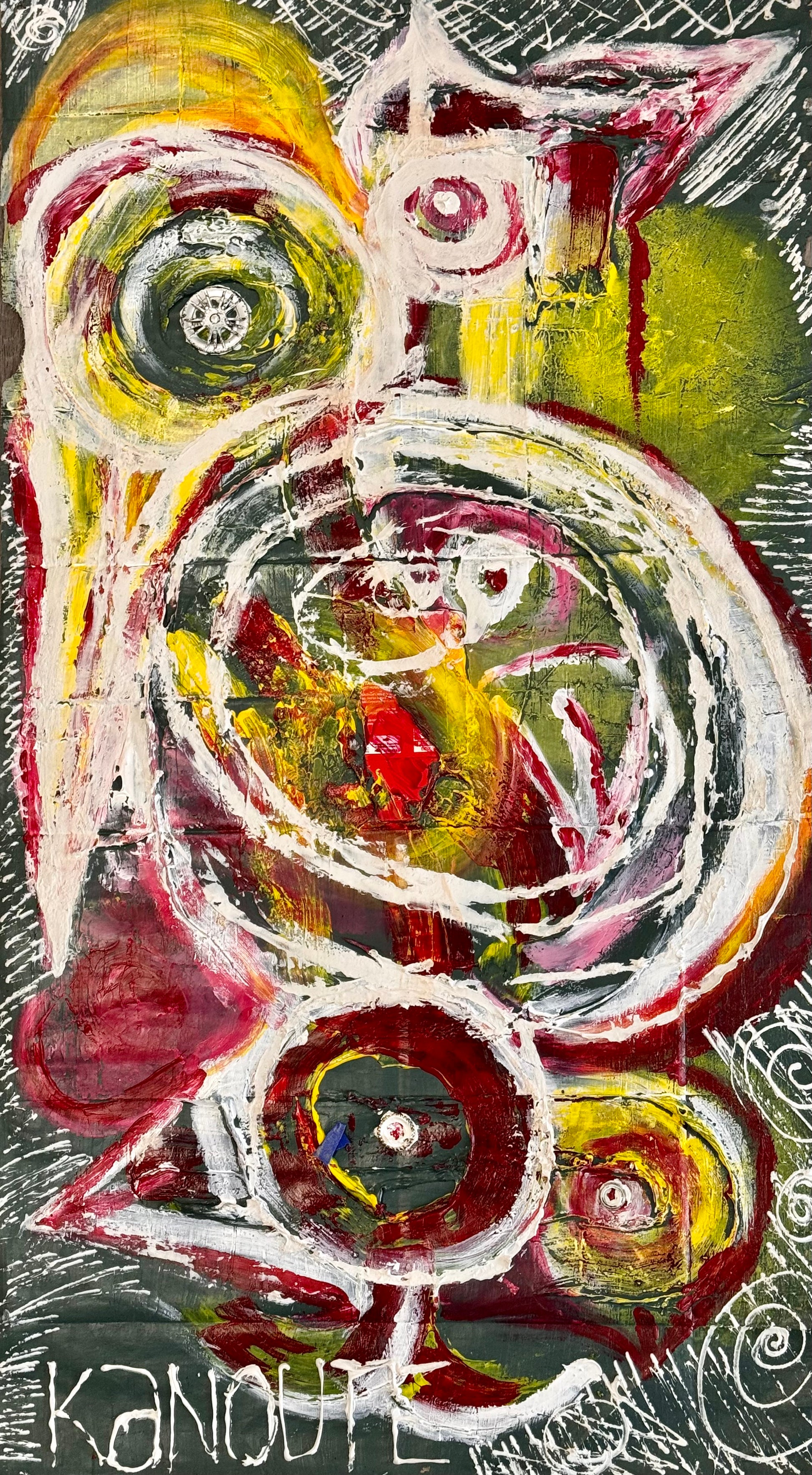 Acrylic paint on recycled paper bag